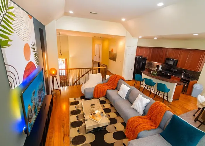 Während des Aufenthalts in dieser Stylish Home Private Pool, King Bed & Garage können die Gäste beliebte Sehenswürdigkeiten wie das Ice at the Galleria und den Gerald D. Hines Waterwall Park erkunden, die 2 bzw. in ca. 10 Autominuten Entfernung von der Unterkunft liegen.